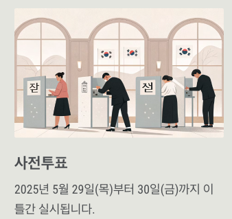 - 사전투표일: 2025년 5월 29일(목) ~ 30일(금)