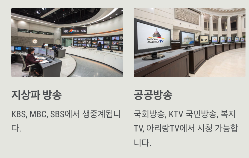 - 공공방송: 국회방송, KTV 국민방송, 복지TV, 아리랑TV