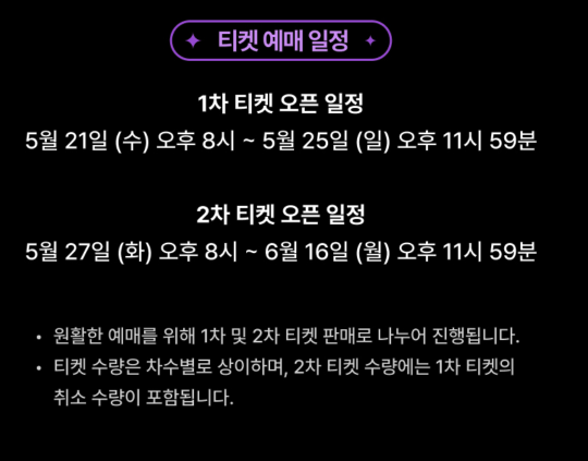 - 2차 티켓 오픈: 2025년 5월 27일 오후 8시