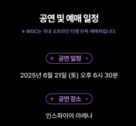 - 예매처: BIGC 예매 플랫폼