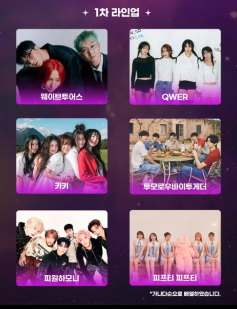 1차 라인업: 투모로우바이투게더(TXT), QWER, 피원하모니, 피프티피프티, 웨이브 투 어스, 키키