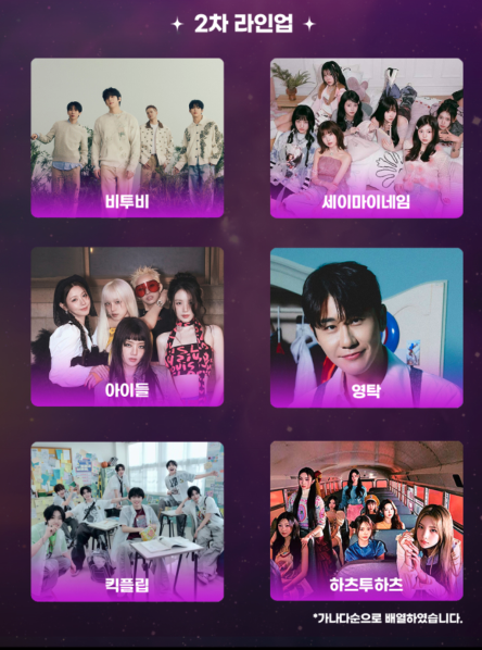 2차 라인업: 영탁, 비투비(BTOB), 아이들(i-dle), 세이마이네임(SAY MY NAME), 킥플립(KickFlip), 하츠투하츠(Hearts2Hearts)