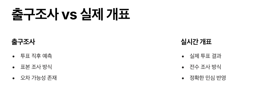 출구조사는 참고용일 뿐, 진짜 민심은 실시간 개표현황을 통해 확인됩니다.