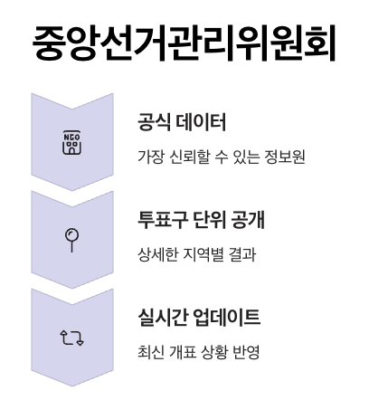 - 중앙선거관리위원회 홈페이지: 투표구 단위까지 실시간 공개