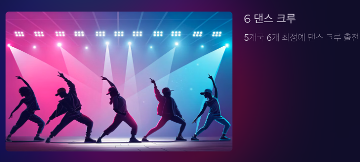 5개국 6개의 최정예 댄스 크루가 출전합니다.
