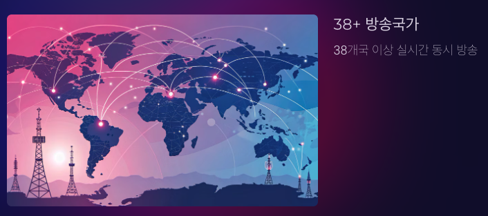 - 38개국 이상 실시간 동시 방송