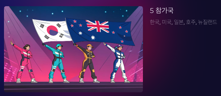 💡 참고: 일본은 두 개의 크루가 참가해 강력한 경쟁 구도를 형성합니다.