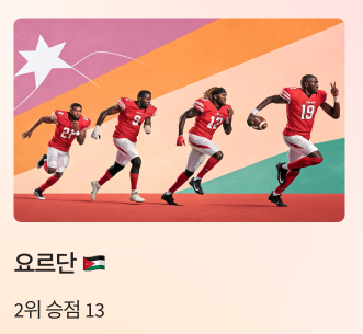 | 2위 | 🇯🇴 요르단 | 13 |