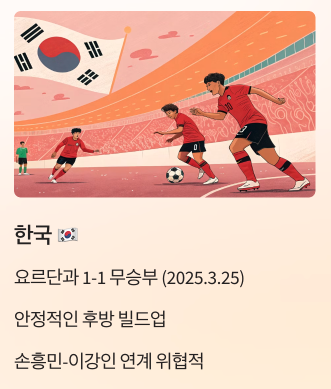 - 🇰🇷 한국 – 요르단과 1-1 무승부 (2025.3.25)