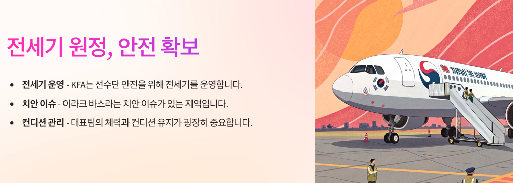 KFA는 선수단 안전을 위해 전세기를 운영합니다.